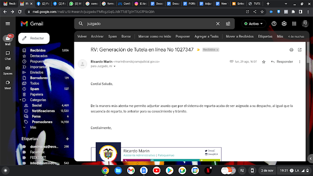 (Juan Pablo Dominguez Burbano), mayor de edad, identificada como aparece al pie de mi firma domiciliada en la ciudad de New York, en ejercicio del artículo 86 de la Constitución Política, y de conformidad con los Decretos 2591 de 1991, 306 de 1992 y 1382 de 2000, interpongo ante su despacho la presente Acción de Tutela, con el fin de que se me protejan mis derechos fundamentales: Derecho a la Participacion Politica, Elegir y Ser elegido, al Trabajo, al reconocimiento y al buen nombre , así como al debido proceso. por parte del Partido liberal colombiano, para fundamentar esta Acción Constitucional me permito relacionar los siguientes: